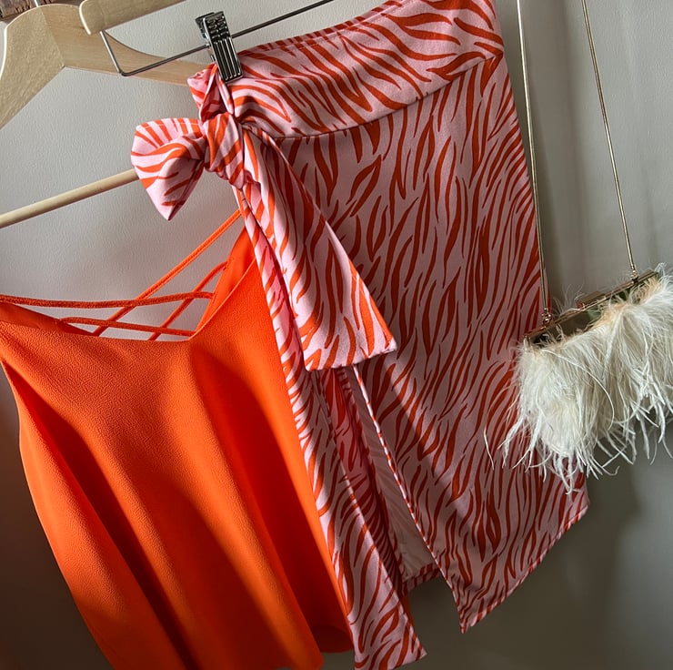 Last Chance to Buy, only 1 left. Our Nigella Wrap Skirt is made from zebra viscose. This beautifully fitting skirt hugs every curve, with the added perk of a tie waist - tie at either side, to the front or even the back - so versatile. Add a strappy top, sandals and a clutch bag for a perfect party look or a vest and chunky sandals for a stylish day look.