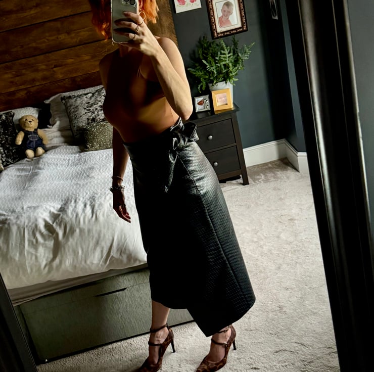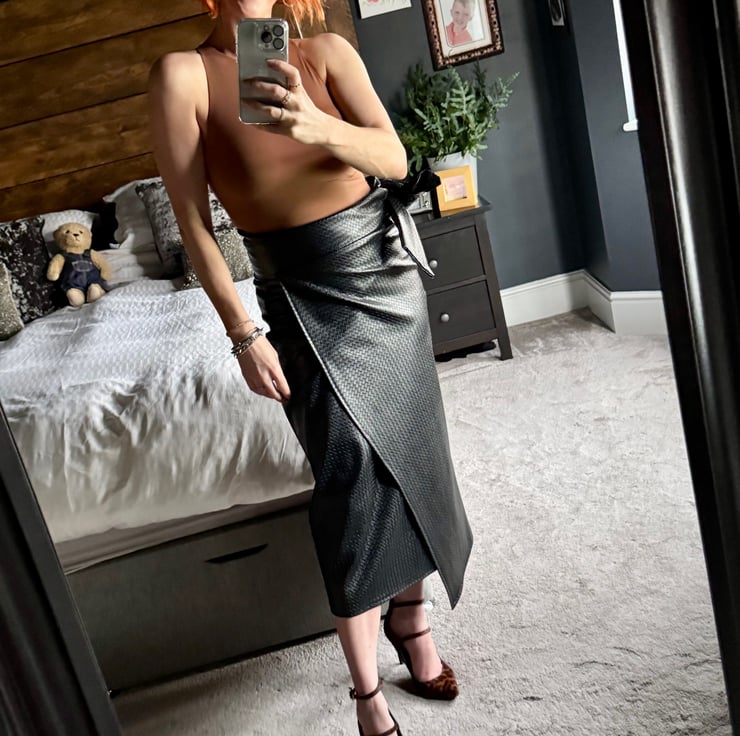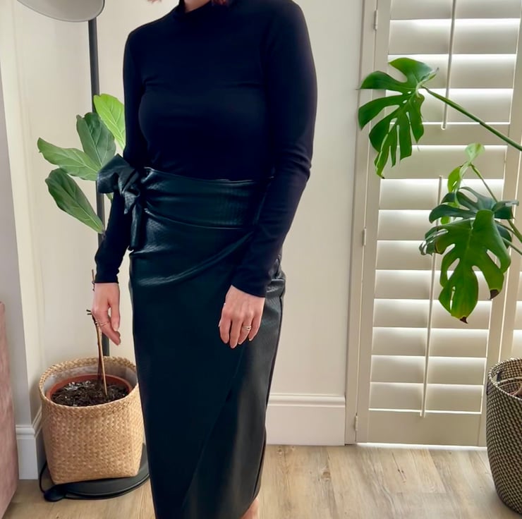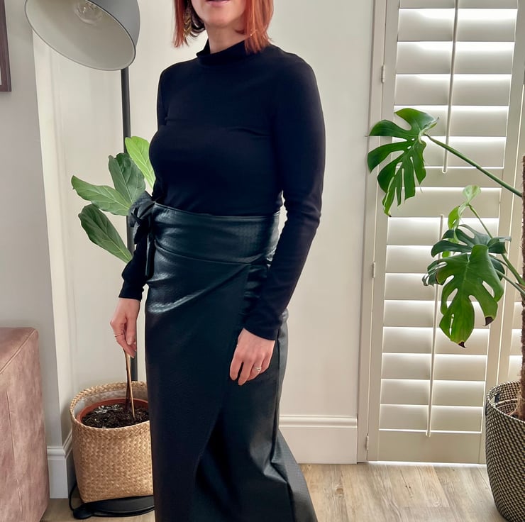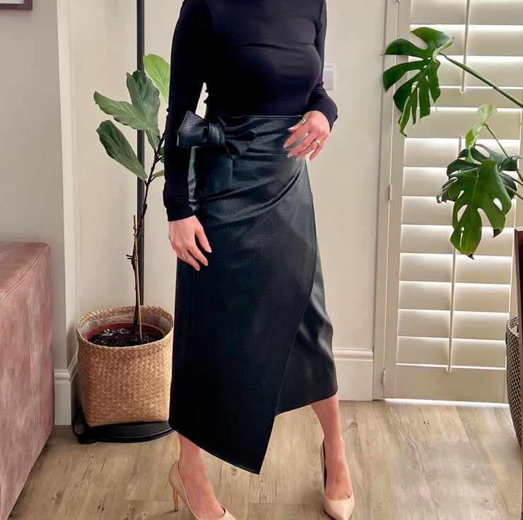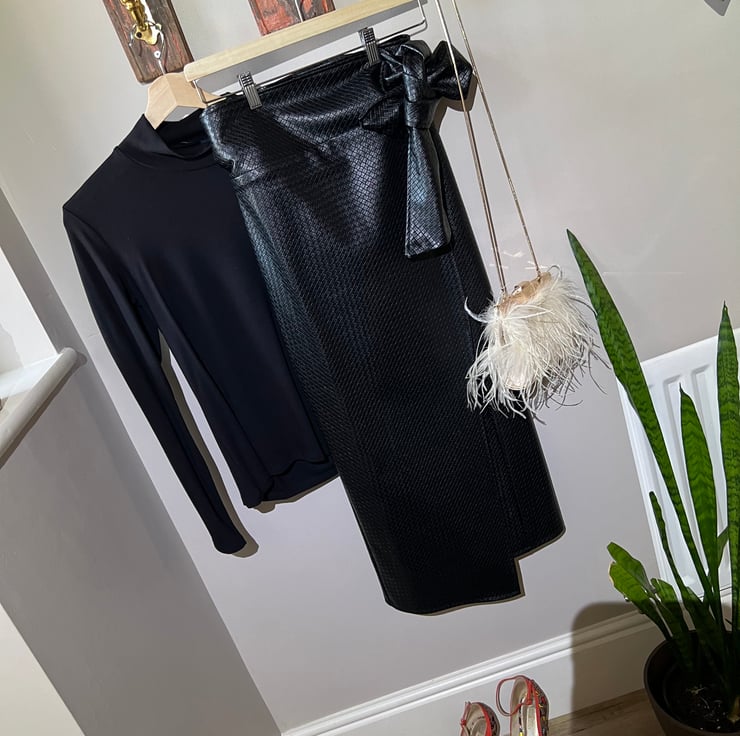 Our Alexus Wrap Skirt is made from vegan textured leather. This beautifully fitting skirt hugs every curve, with the added perk of a tie waist. It can be tied at either side, front or back - so versatile. Add a strappy top, sandals and a clutch bag for a perfect party look or add a hoodie and trainers for a cool day look.