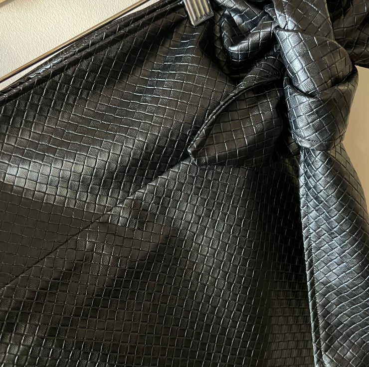 This beautiful vegan leather skirt was inspired by a vintage handbag that I bought - the bag had a tie fastening.