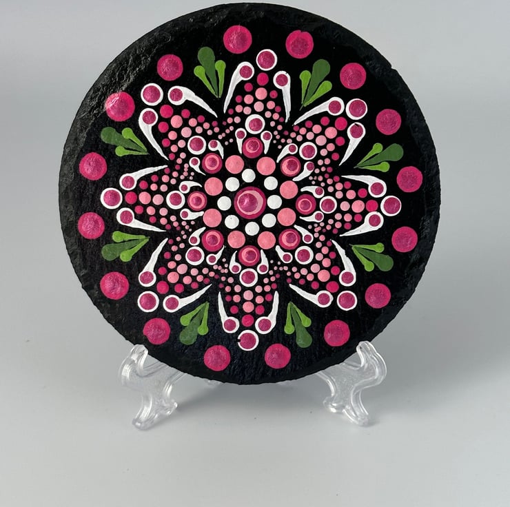 This colour scheme was inspired by the pink roses in a country cottage garden in Somerset. They were hand painted in my Glastonbury studio and are finished with a heat resistant lacquer. They have rubber feet to protect your surfaces