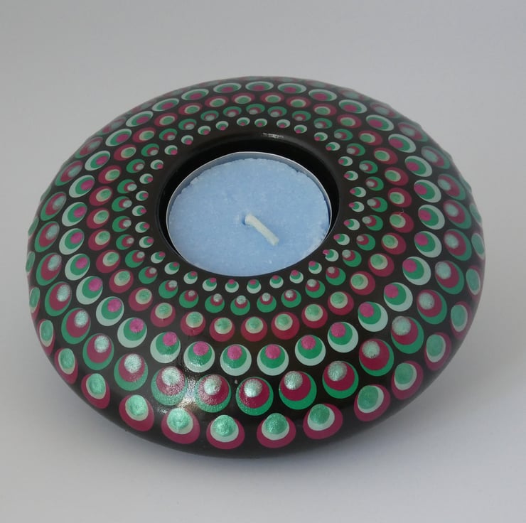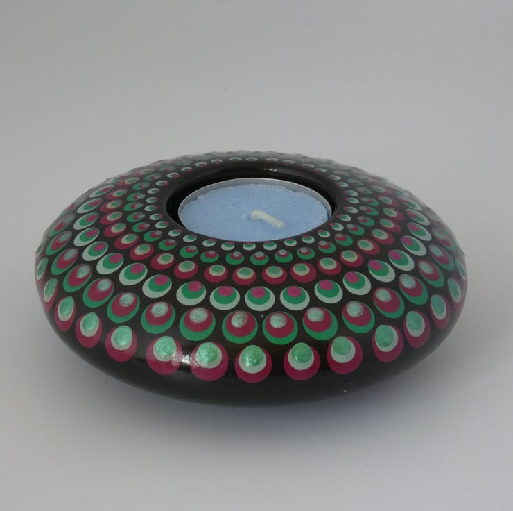This tea light is handmade and hand painted in my Glastonbury studio.