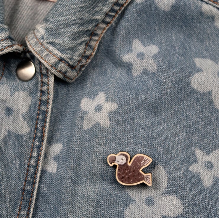 Beautiful wooden DODO wooden pin badge.