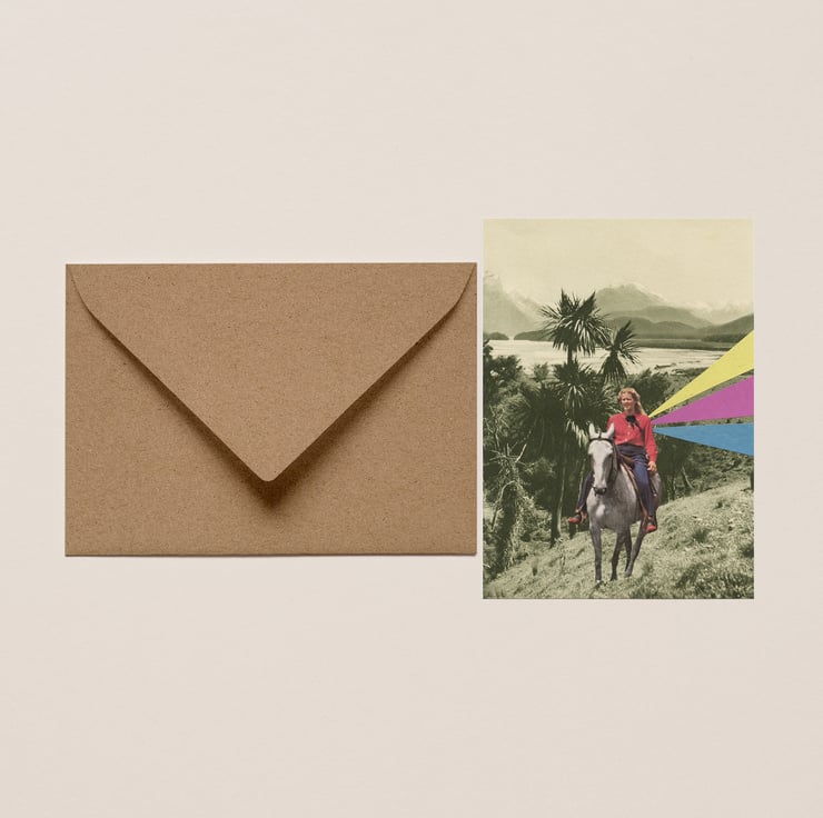 Each card is giclée printed on mohawk card with a matte finish. Includes a brown kraft envelope within a protective biodegradable OPP bag.