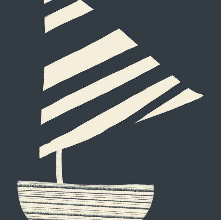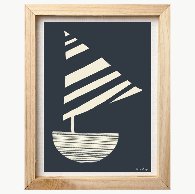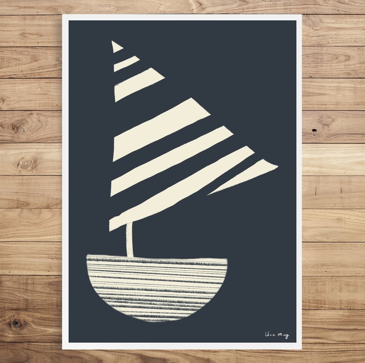 This charcoal grey stripy sailing boat illustration by Lisa May Illustration has been drawn digitally on an iPad using Procreate (and lots of Yorkshire Tea) and is custom printed as a quality open edition art print. This artwork is professionally printed on high quality poster paper and carefully packaged. The cute sun illustration is a perfect print for a nursery or children's bedroom. This adorable art print will create a cute and cosy vibe for your home and is available in lots of colours. This item is A4 but if you would like another size please contact me and I will arrange for you (up to A2 available).