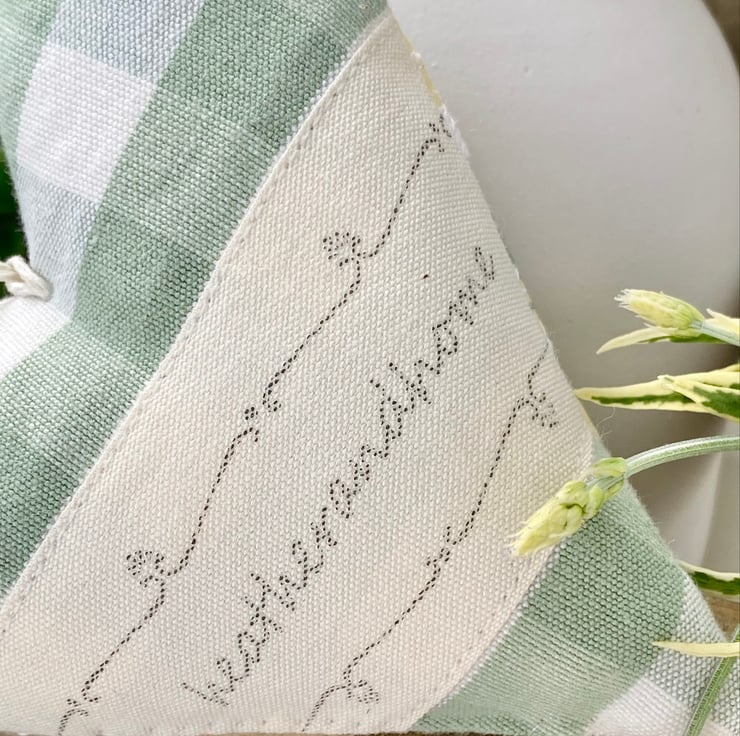 The new heart is in serene sage green and white checks and is adorned with the same exquisite woven ribbon featuring beautiful lily of the valley (a flower that symbolises purity, joy, happiness and luck) but this time in pale yellow, sage green and white.