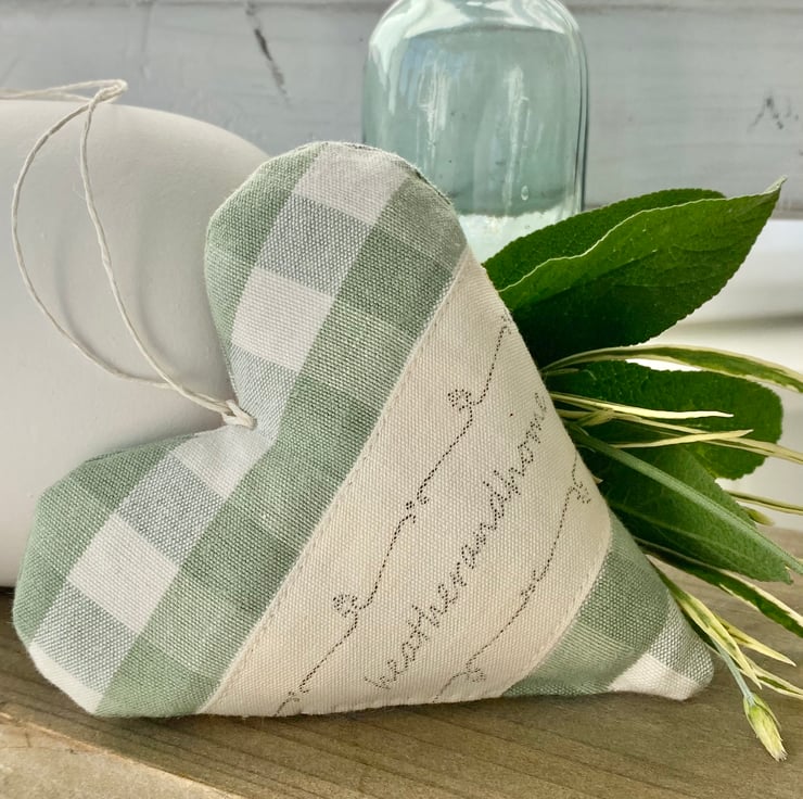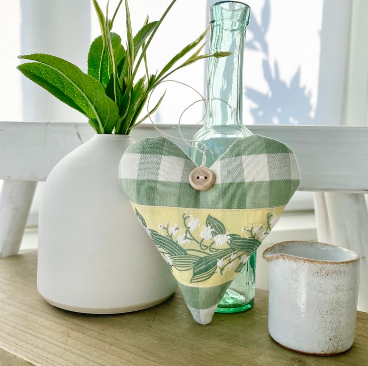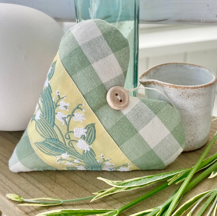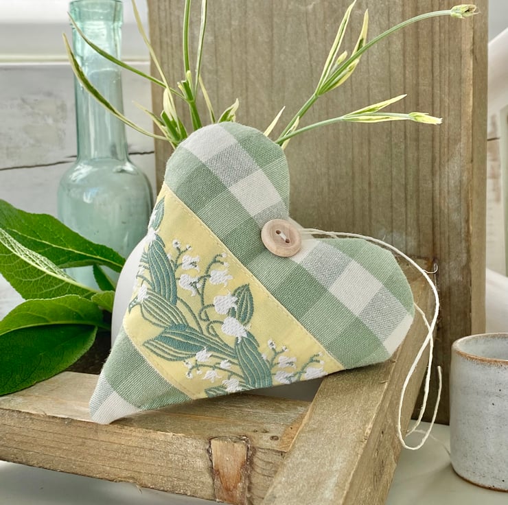 The June Lily of the Valley Heart (in sage green gingham with a cream and sage green ribbon) sold out on day one, so in response to popular demand, I've made a second version ...