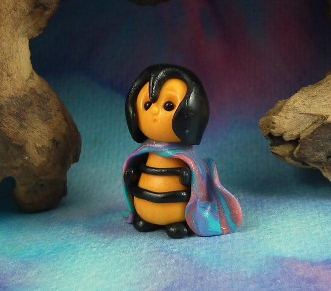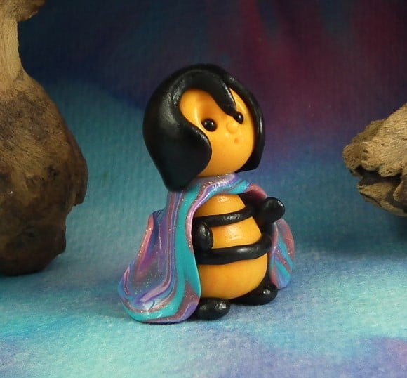 This is a 'one of a kind' creation; entirely handmade without the use of moulds here at my studio on the Sussex Coast. Modelled with Prosculpt polymers, painted with heat set paints before sealing with lacquer, Bess has sparkling black onyx eyes and is one and a half inches tall.