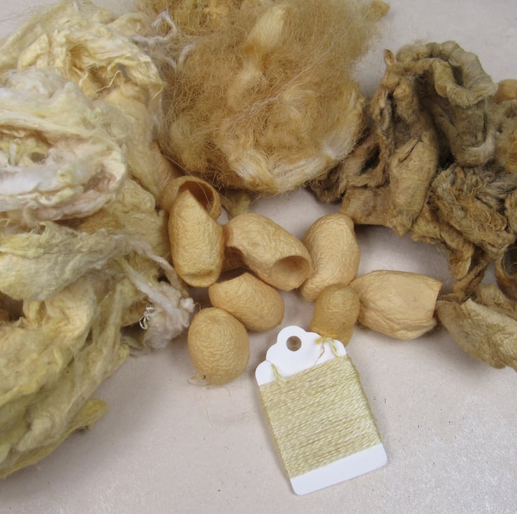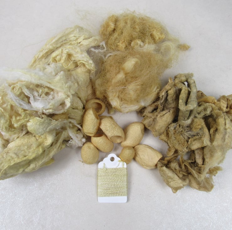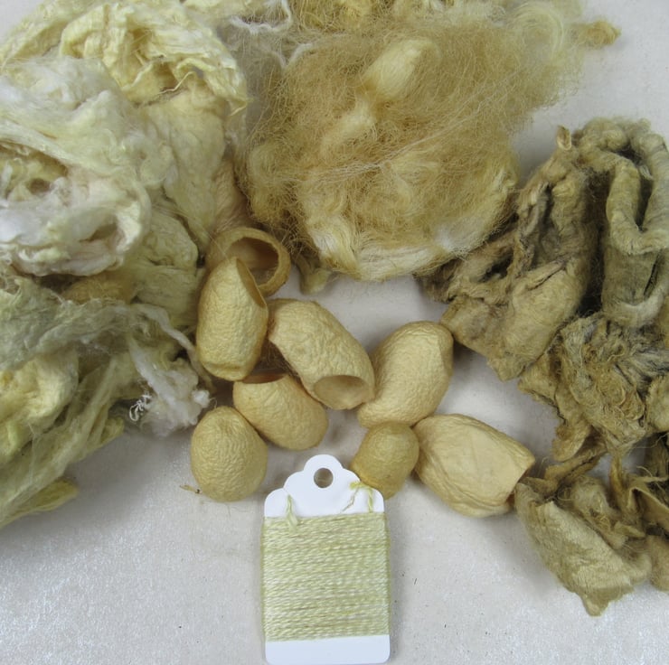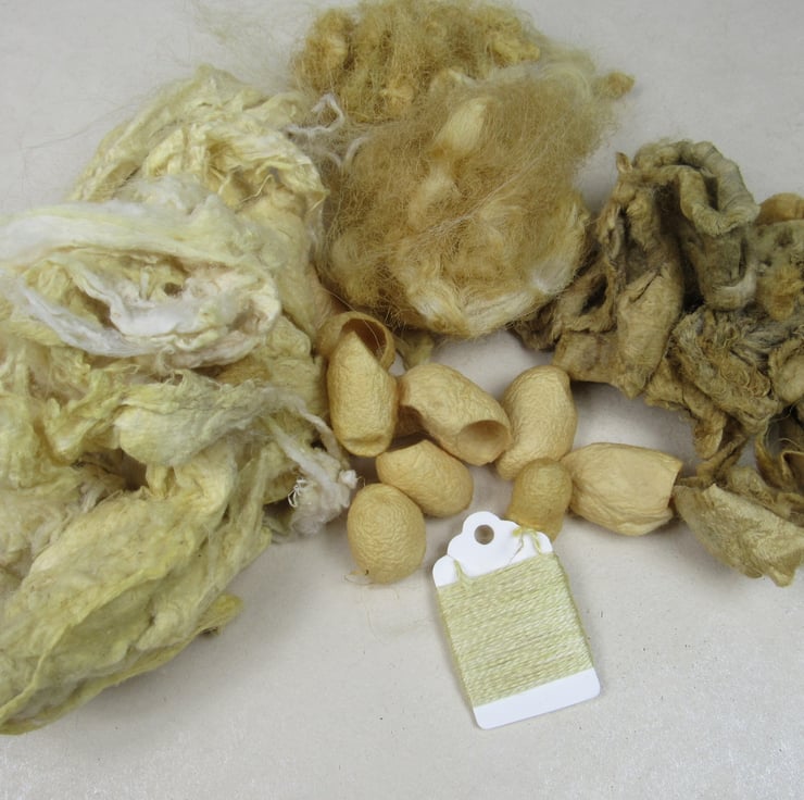 A collection of mixed silk fibres and textures, carefully dyed with natural dyes.