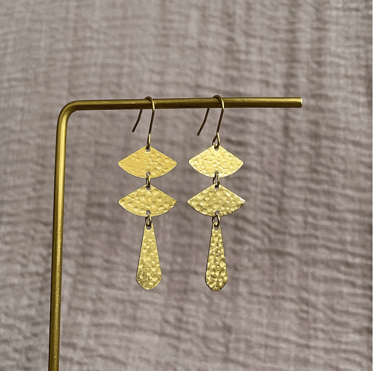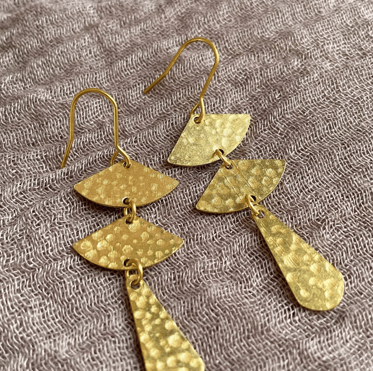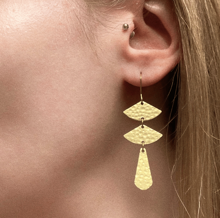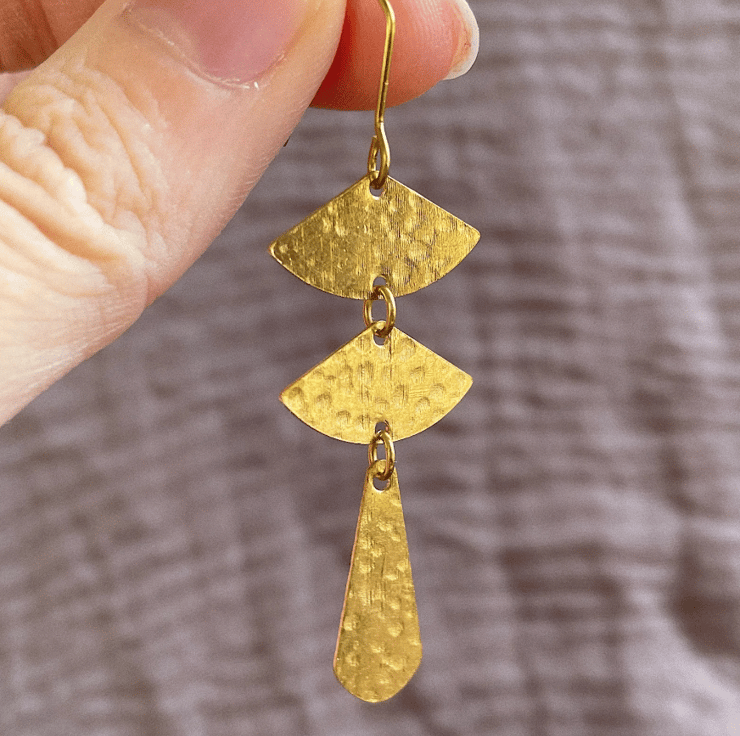 Earrings are made from raw nickel & cadmium free brass. Brass develop patina over time and can be left or cleaned using soft cloth.
