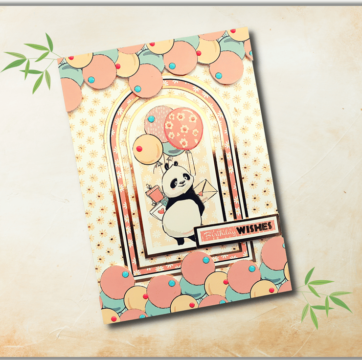 It is handcrafted by myself, using the Hunkydory "Happy Panda" luxury card collection.