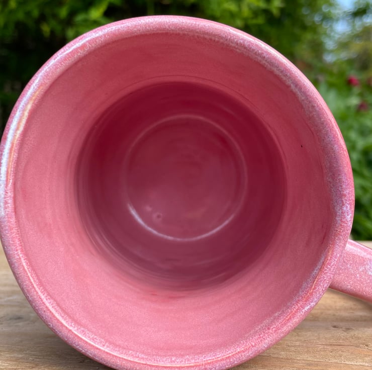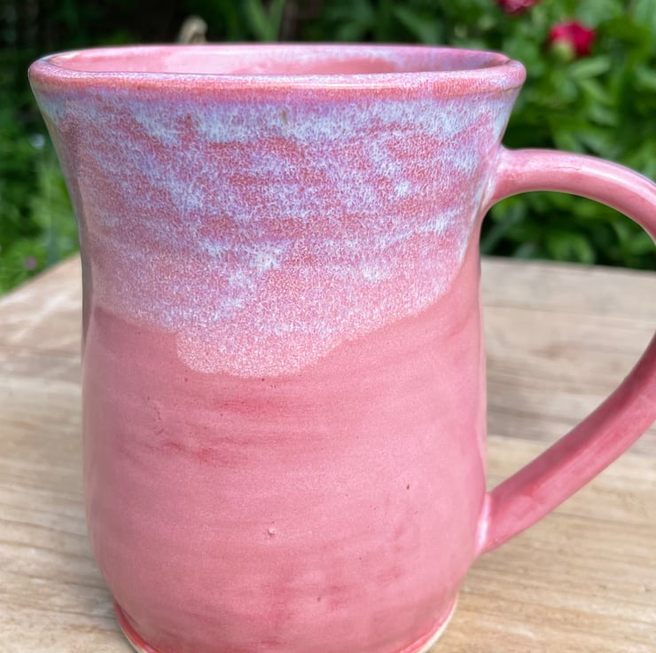 The mug was dried slowly once the handle was added, over a few weeks. It was then fired to over 1000°c in a bisque firing. It was then glazed and fired again over 1200°c.