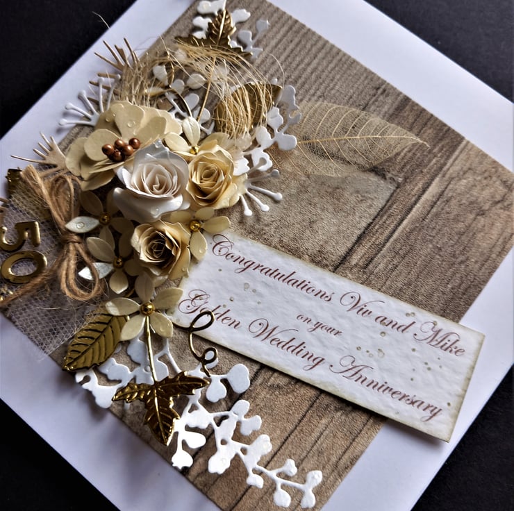 I design and make all of my cards myself and I pay great attention to detail.. I make each individual flower and the leaves etc, etc and mount them onto a driftwood look background.