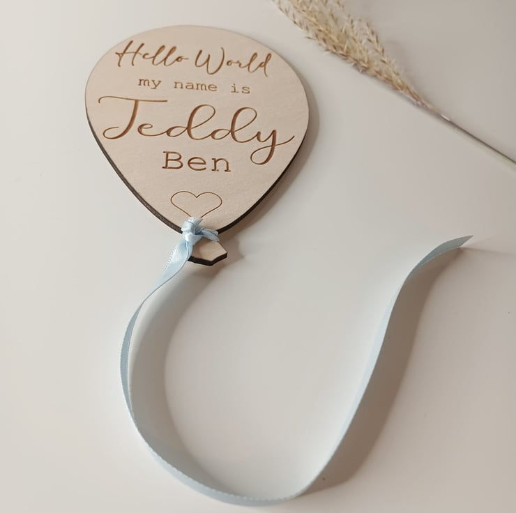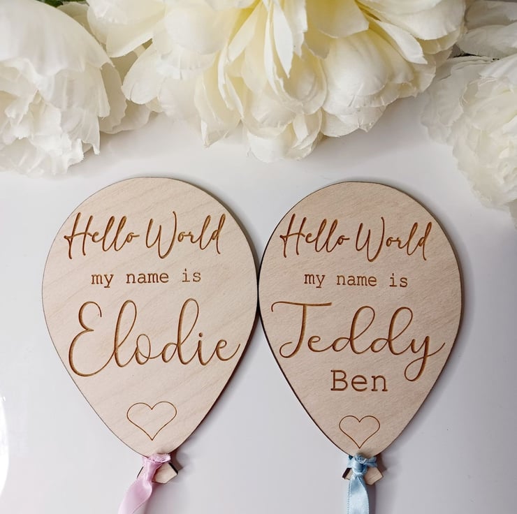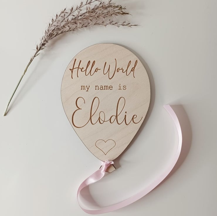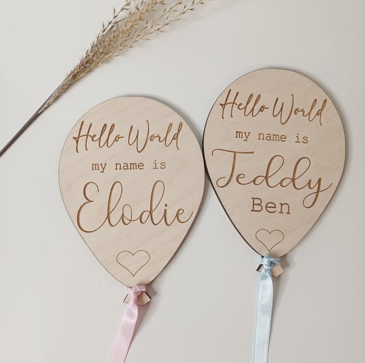 Looking for a unique and memorable way to introduce your little one to the world? Our customised baby announcement plaques are just what you need! Featuring a charming balloon shape, each wooden plaque is expertly engraved with your baby's name, making it the perfect addition to any pregnancy or birth announcement. But that's not all - our personalised plaques also make for an adorable photo prop that will help you capture those precious early moments with your new bundle of joy.