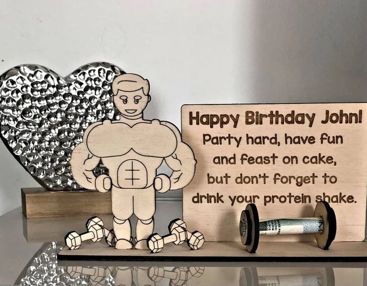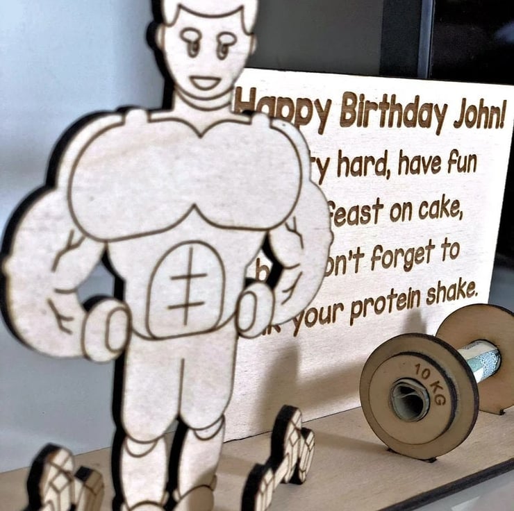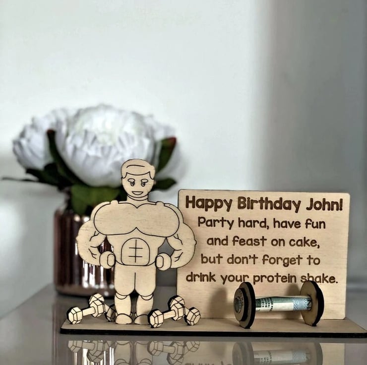 Fanatic about sport? This Personalised Money Holder is the ultimate accessory. Featuring the illustration of a muscly man surrounded by weights, handcrafted from 3mm of high-quality birch plywood, this Money Holder is one of a kind.
