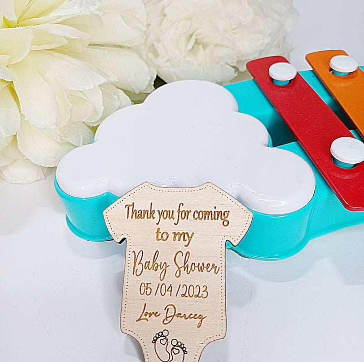 - Personalized engraving allows you to add a special touch to your baby shower decor.