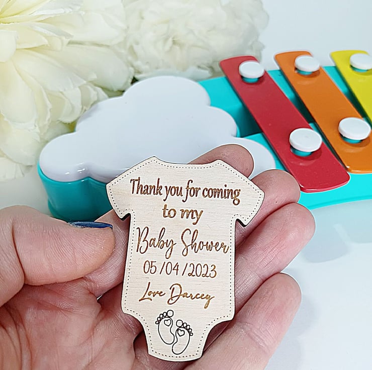 Hey there! We've got some amazing Wooden Baby Shower magnets that you'll absolutely adore! These magnets are made of high-quality wood and are designed to add an extra touch of charm to your baby shower.