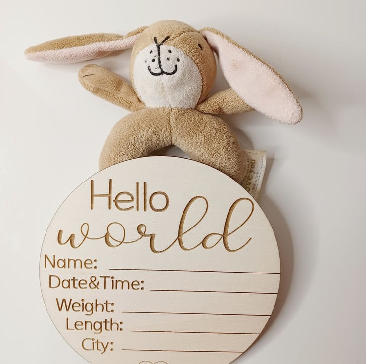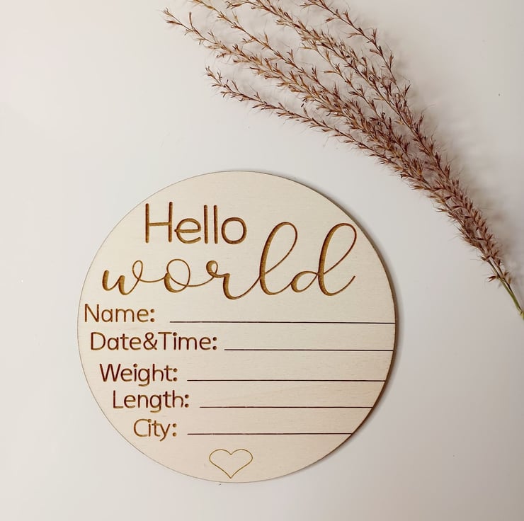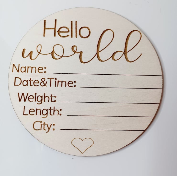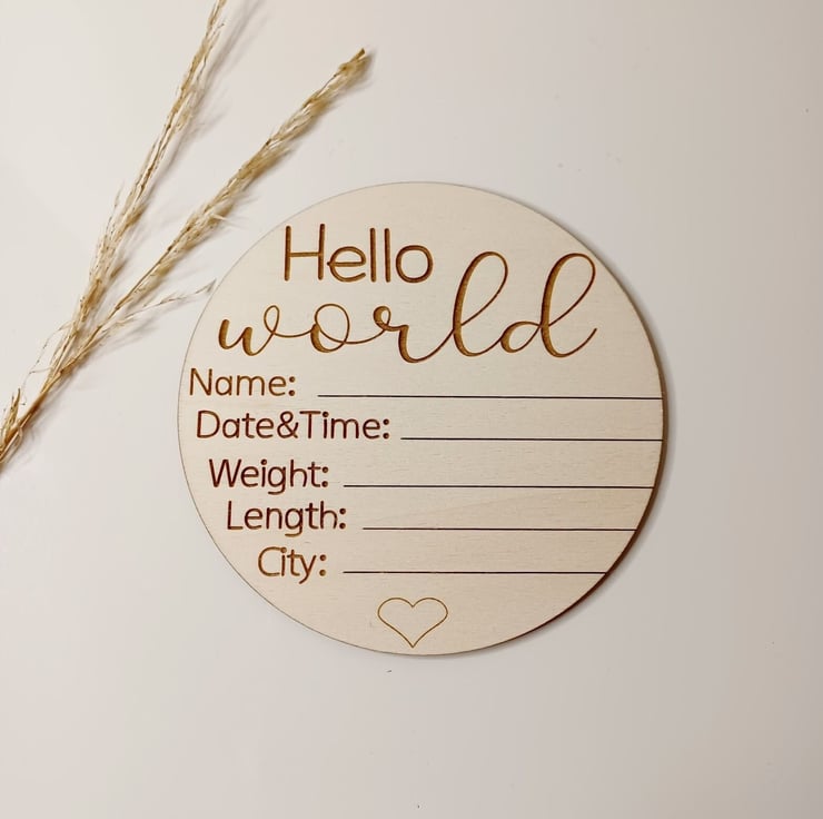 This disc is made of high quality 3mm Birch Plywood with laser engraved text. Perfect to announce your new baby name, date of birth, weight, length and city of birth. You can also use it as nursery dcor.