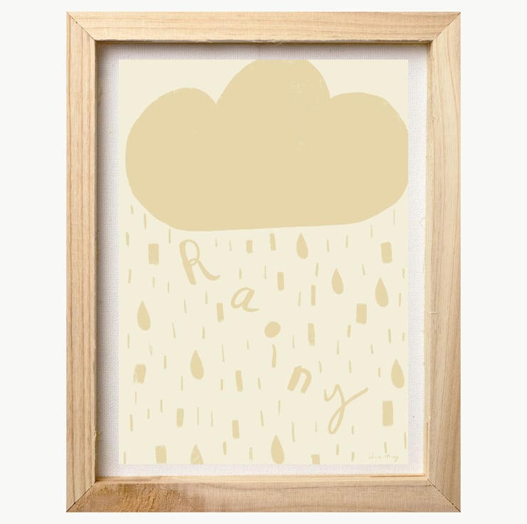 This lemon yellow and cream rainy cloud illustration by Lisa May Illustration has been drawn digitally on an iPad using Procreate (and lots of Yorkshire Tea) and is custom printed as a quality open edition art print. This artwork is professionally printed on high quality poster paper and carefully packaged. The cute sun illustration is a perfect print for a nursery or children's bedroom. This adorable art print will create a cute and cosy vibe for your home and is available in lots of colours. This item is A4 but if you would like another size please contact me and I will arrange for you (up to A2 available).