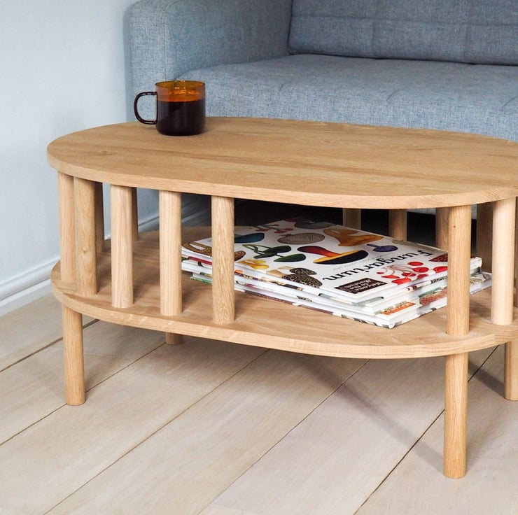 This coffee table is made from solid oak from a supplier with Forest Stewardship Council (FSC) certification to ensure that the timber is sourced sustainably and ethically to help protect the worlds forests. The design and production of this item is done with longevity in mind, using traditional joinery and contemporary designs so that your item can last a lifetime. The wood is treated with Osmo Oil, a high quality finishing oil that protects your items. All of our items are dispatched in recyclable packaging, using only cardboard packaging and paper tapes.
