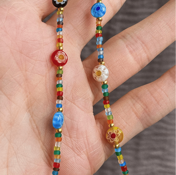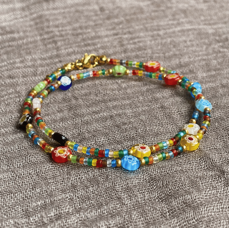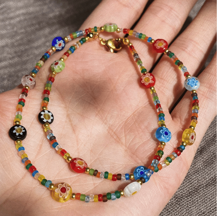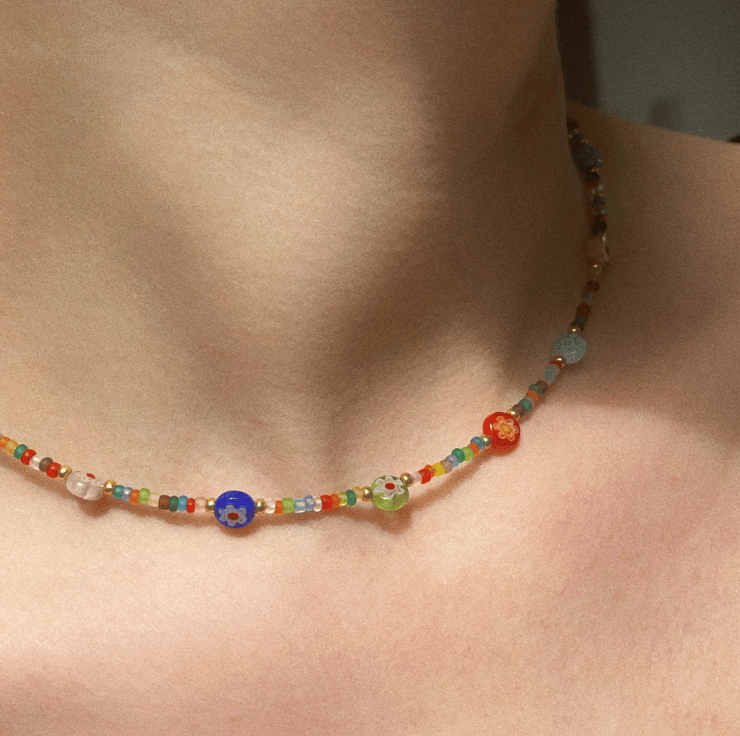 This trendy summer necklace is made from colourful beads and stainless steel gold clasp. Beads size is approx 1 mm.