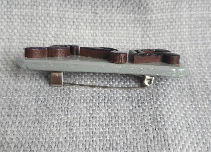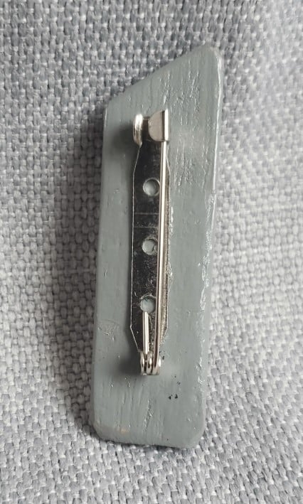 Made using repurposed wooden shapes and canvas pegs. The pegs are shaped and sanded before being coated in acrylic paint. The shapes are painted and then glued to the backing peg. They are then coated in clear acrylic to protect and provide a high shine.