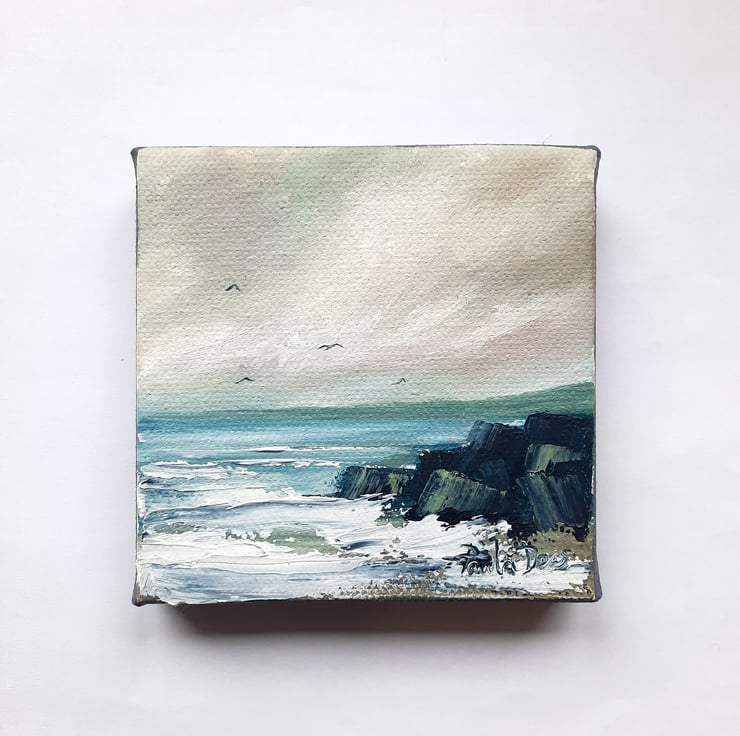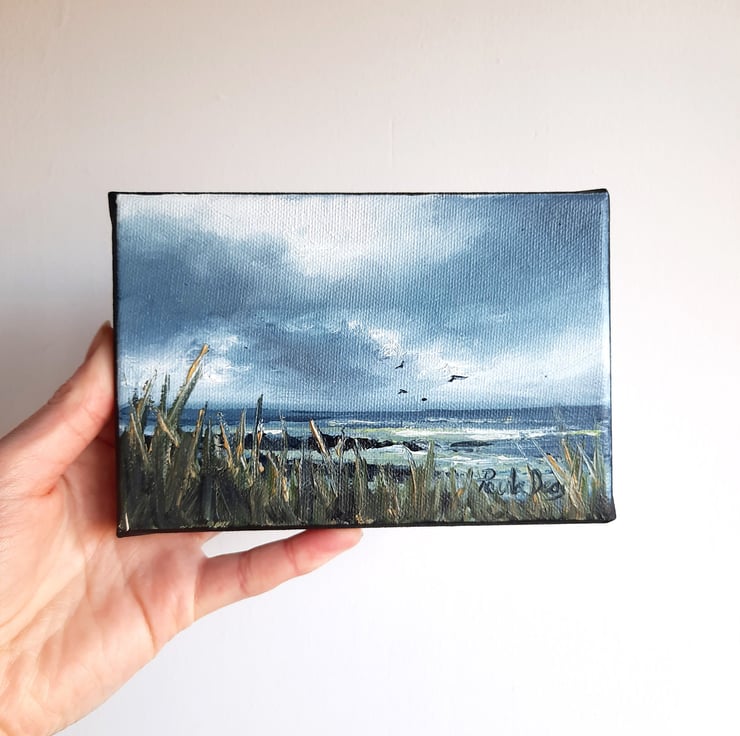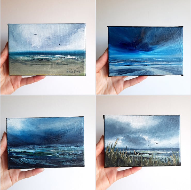 I will create a custom, miniature, oil painting from your reference photograph of your special place or we can discuss themes and atmospheres to create your look! Send me your reference pictures through Folksy and we can get started! I specialise in landscape and seascape or semi-abstract atmospheric scenes. I will discuss with you all aspects of the painting and be in touch throughout the process.