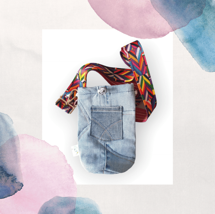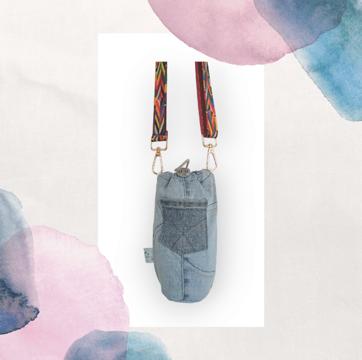This water cooler is made from recycled denim, and is 100% handmade and unique. Please hand was with care.
