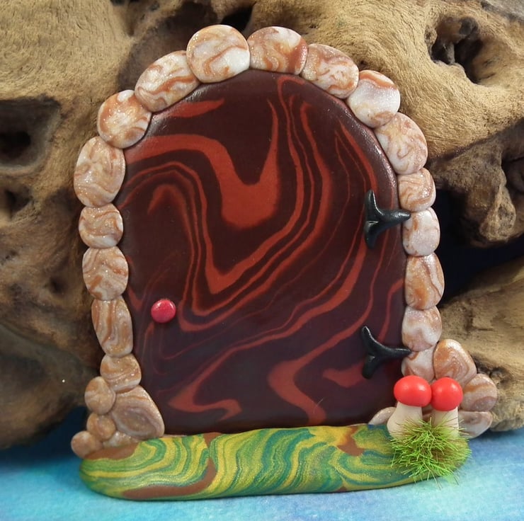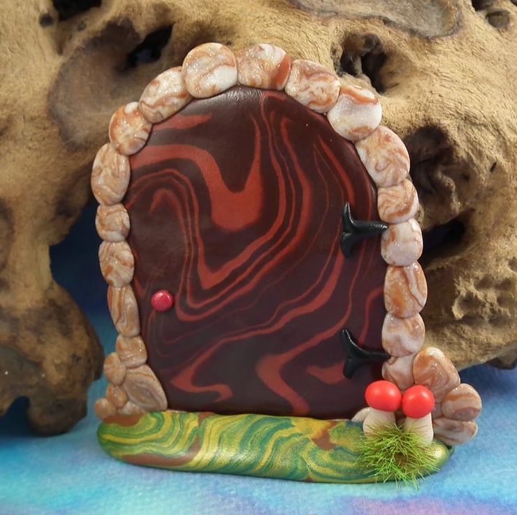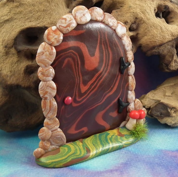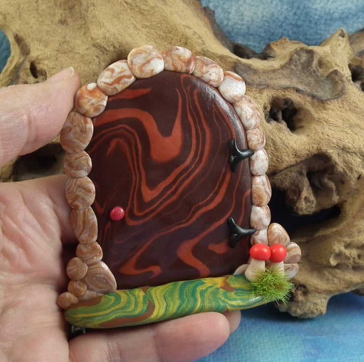 This is a 'one of a kind' creation having been entirely handmade without the use of moulds here at my studio on the Sussex Coast. Modelled with artist blend polymers before sealing with lacquer. The door is four inches high, set into a base, so will stand freely with no attachments needed.