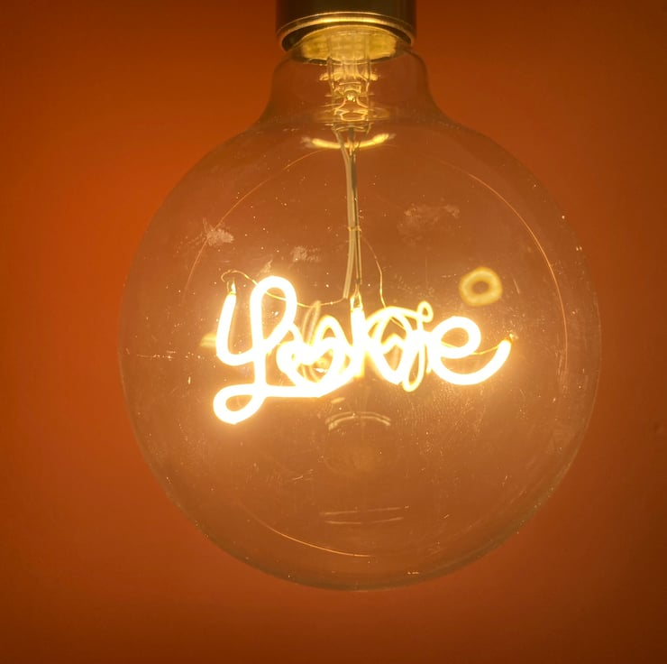 I had seen the bulbs with script filaments on sale and was inspired to make a statement lamp to go with the statement in the bulb!