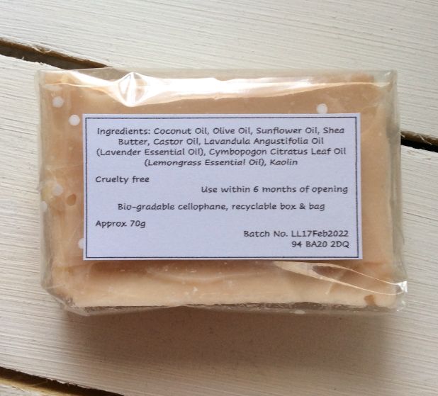The soap has been made with high quality natural ingredients including lavender and lemongrass essential oils, and gives a rich creamy lather.