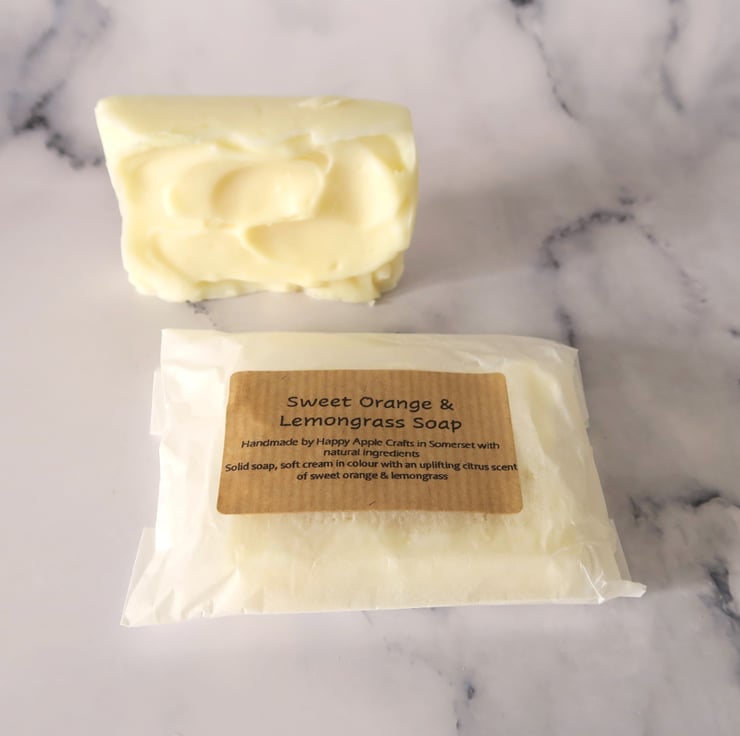 Handcrafted solid soap bars made in small batches and have a slightly rustic appearance. They are pale cream in colour with an uplifting sweet orange and lemongrass scent.