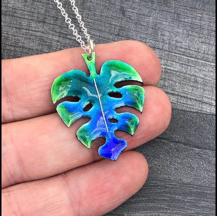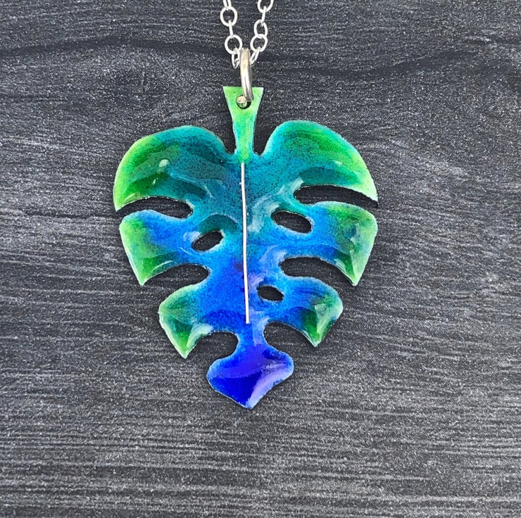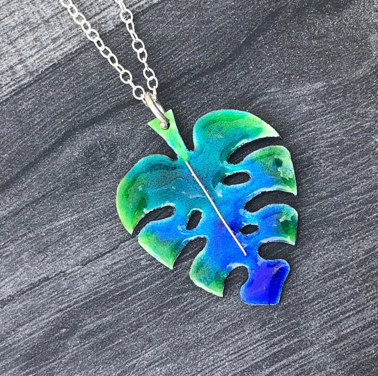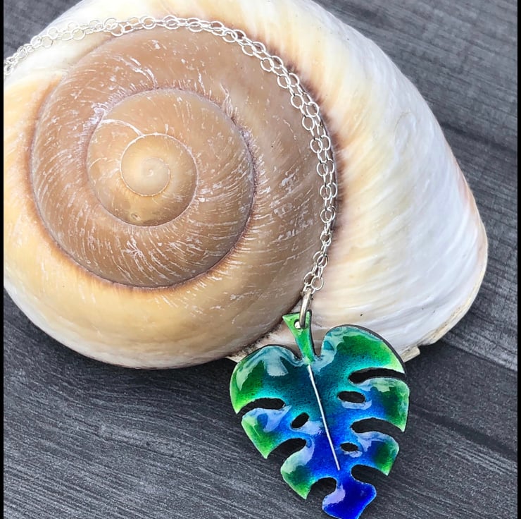 Montserrat Leaf Pendant, leaf pendant, leaf necklace, enamel, gift , nature,