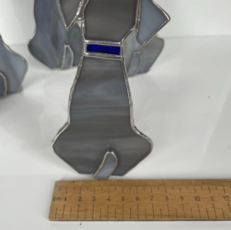 These won’t fail to delight dog owners. Inspired by a lovely lady and her snauzer dog at a local market, I set about finding the perfect glass to use. Perfect for a window sill giving the illusion that the dog is waiting for your return home. Or a customer has told me hers is watching tv. This would make a super unique gift for friend or family member. It would also make a lovely remembrance ornament of a pet that has passed.