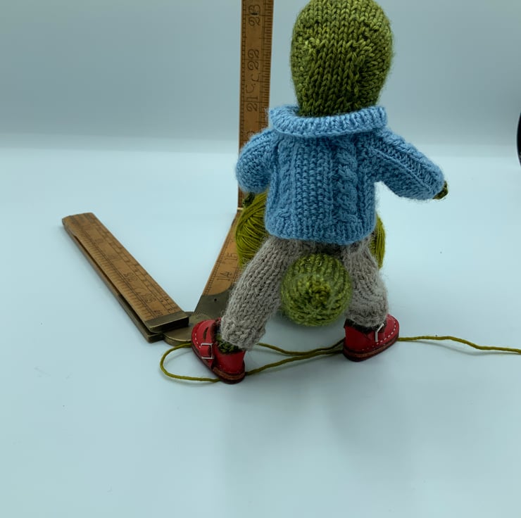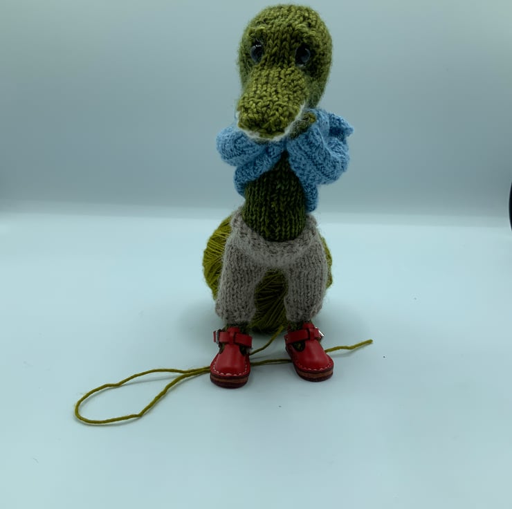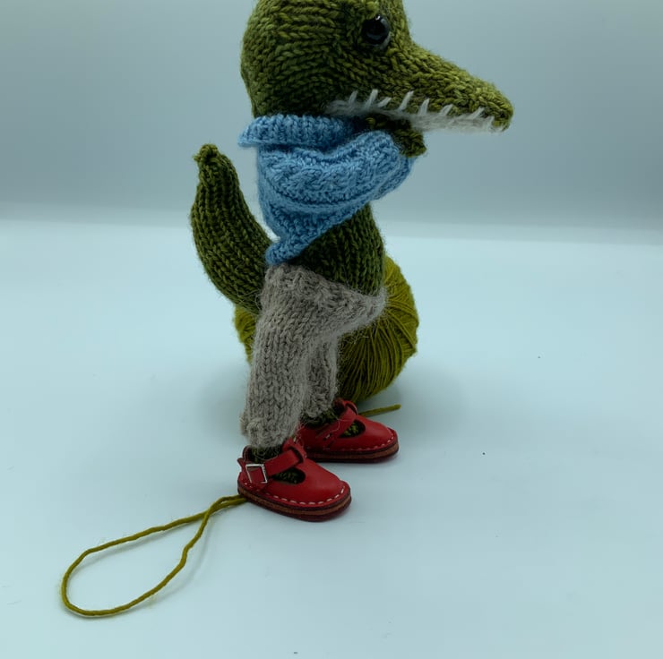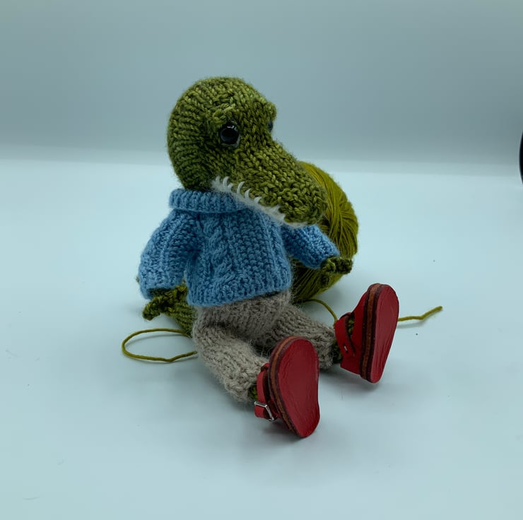 Using the original Dot Pebbles pattern, this Croc Doll has been hand knitted by use using a mixture of Merino and Alpaca yarns.