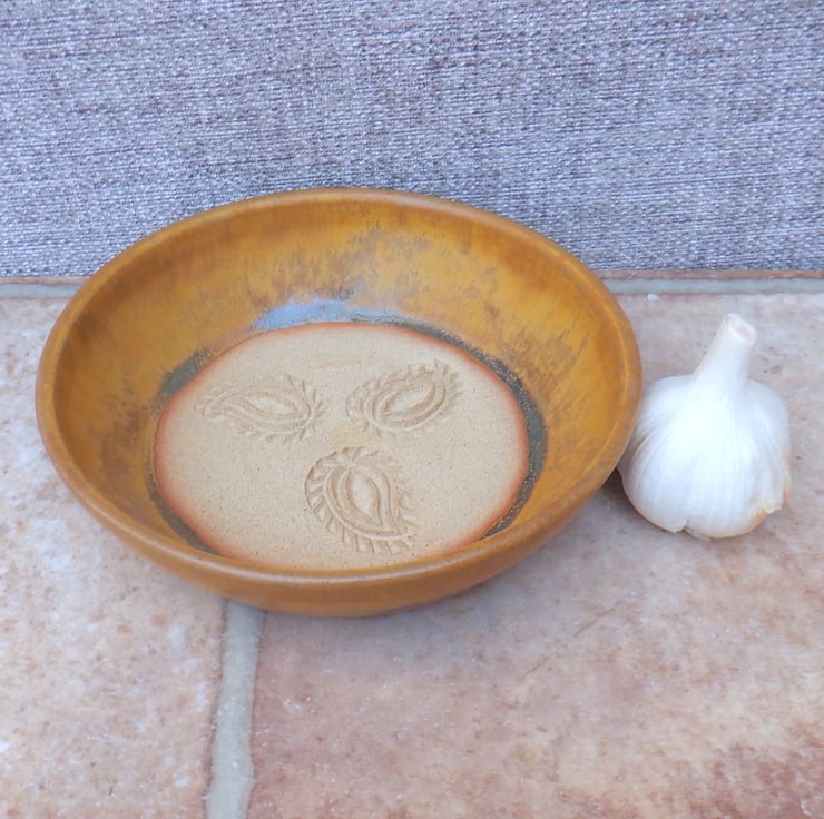 Handthrown on my pottery wheel using strong toasted stoneware clay, I have finished it in a mustard ochre reactive glaze.
