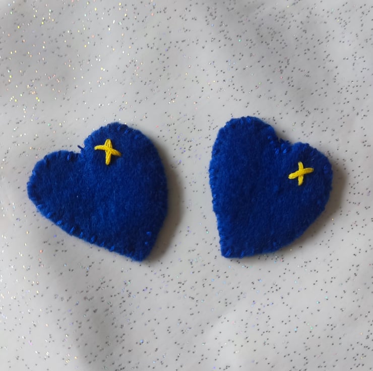 These are a royal blue and all stitched by hand with a little sunshine yellow kiss on each