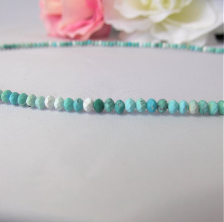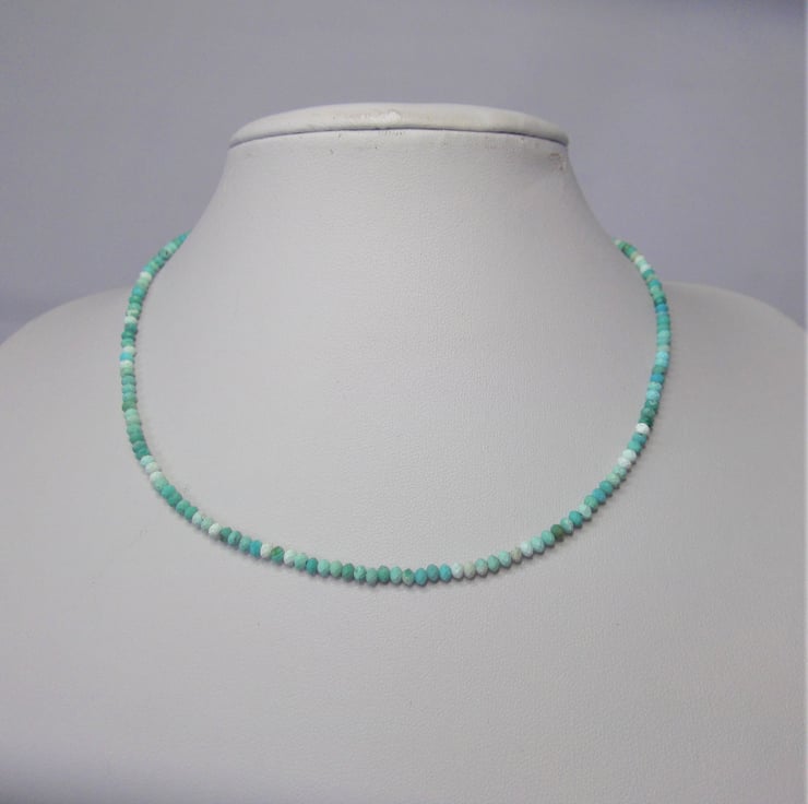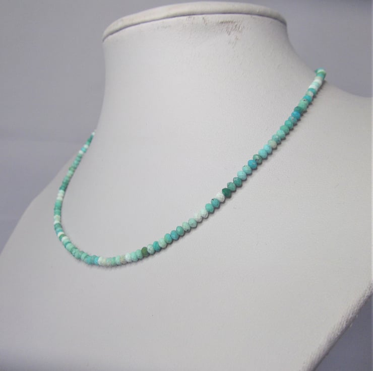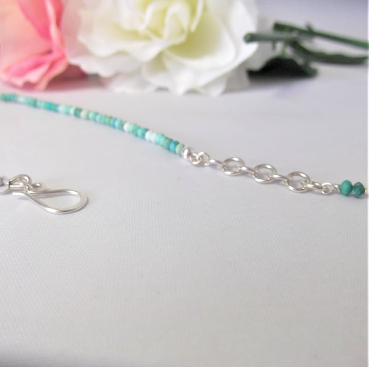 This stunning 16-inch necklace features African turquoise jasper beads, beautifully handcrafted with a recycled silver hook and eye clasp. The extension chain ensures a comfortable fit for every wearer.