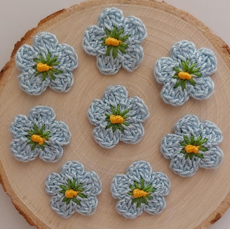 8x Tiny crochet flowers - Size approx. 2.5cm