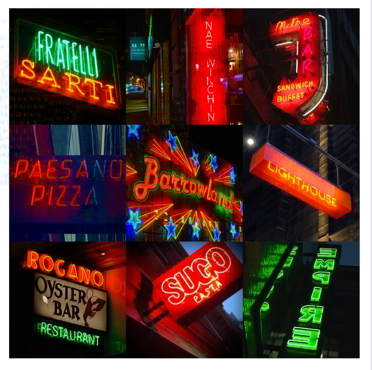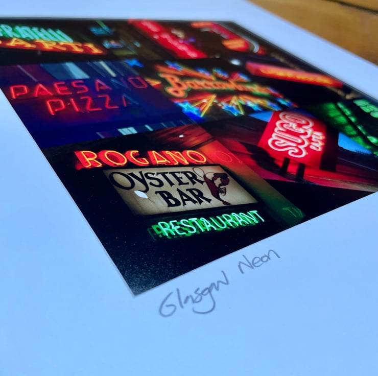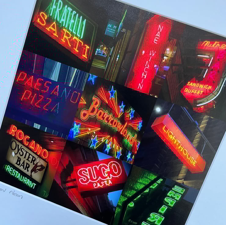 A new print showcasing a special collection of 9 Glasgow neon images in one striking colourful collage.