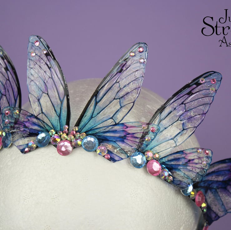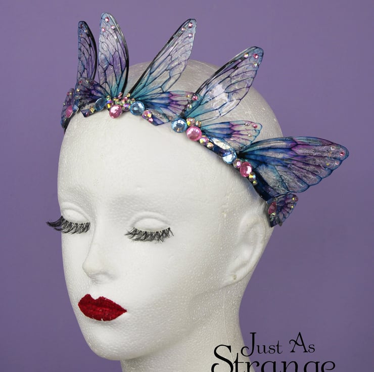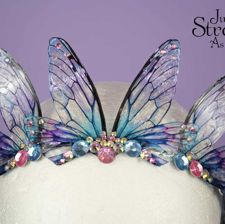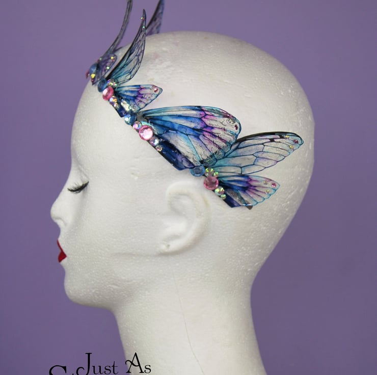 This is definitely a head turner! This beautiful tiara is absolutely perfect for any fairy creature costumes and cosplays, Pagan or Wiccan events, weddings, proms, formal occasions - or even everyday wear! Please note that the wings may grow cloudyopaque over time when exposed to sunlight, heat, perspiration and makeup. The wings should also avoid contact with water.