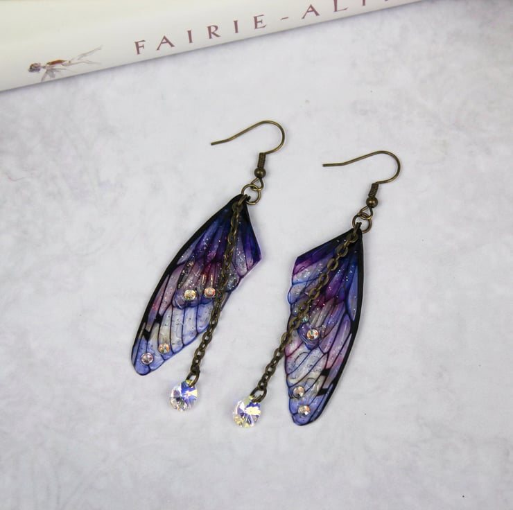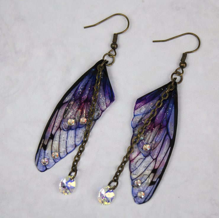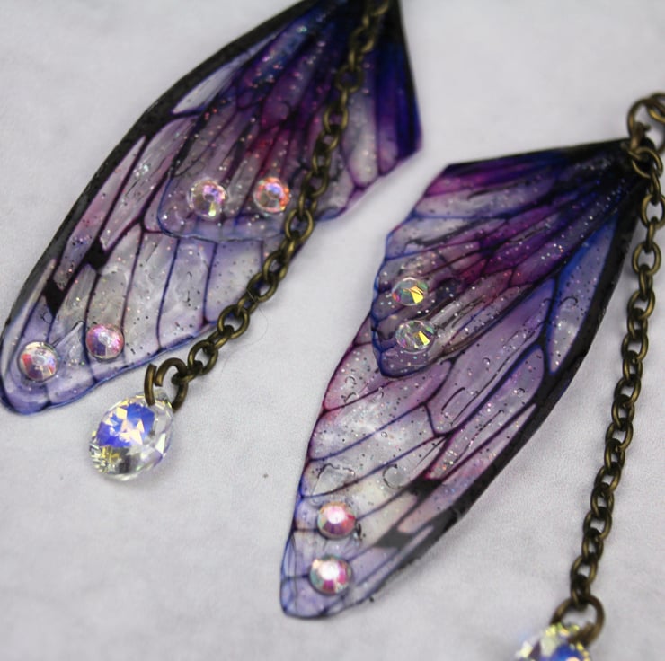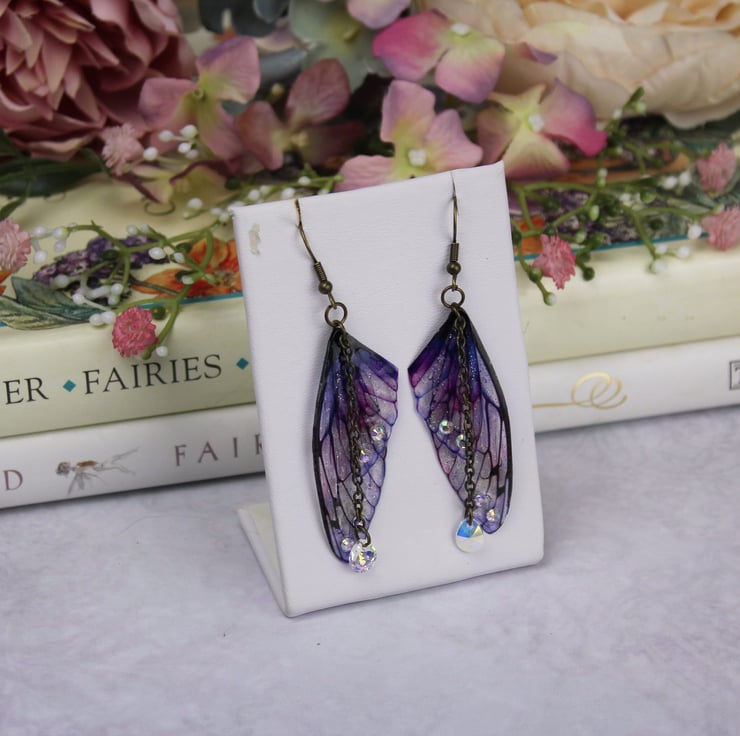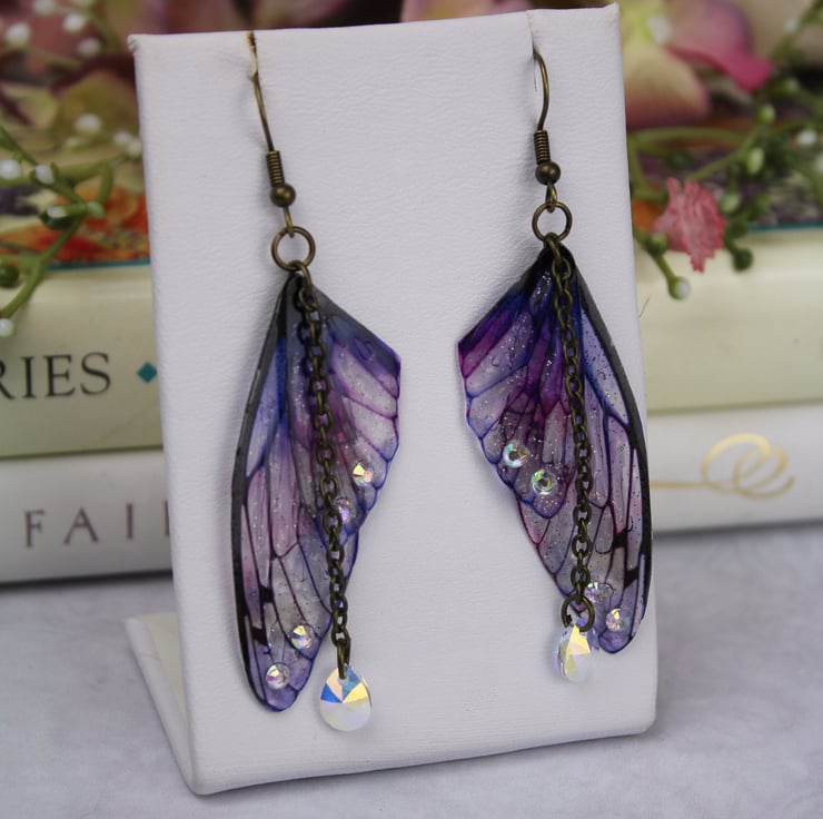A must-have for all fairies! A truly beautiful pair of deep purple fairy wing earrings, adorned with shimmering crystals and Swarovski gemstones. Please choose your desired length from the drop down box. The earrings photographed are the 5cm pair.