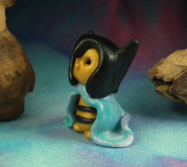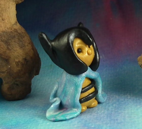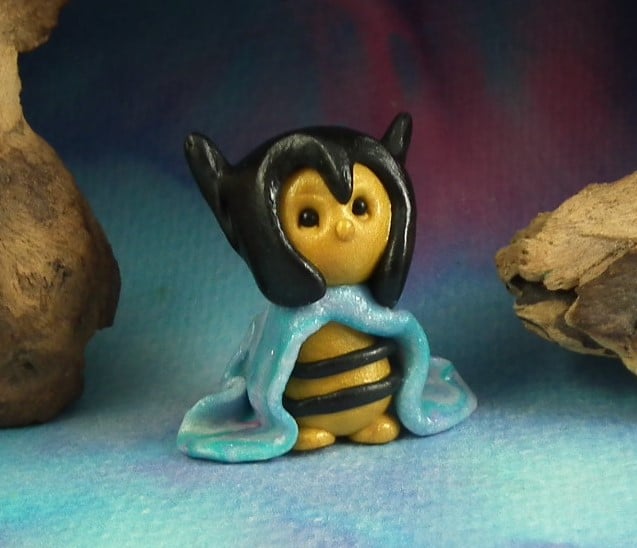 This is a 'one of a kind' creation; entirely handmade without the use of moulds here at my studio on the Sussex Coast. Modelled with Prosculpt polymers, painted with heat set paints before sealing with lacquer, Berry has sparkling black onyx eyes and is one and a half inches tall.