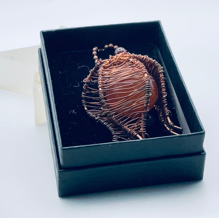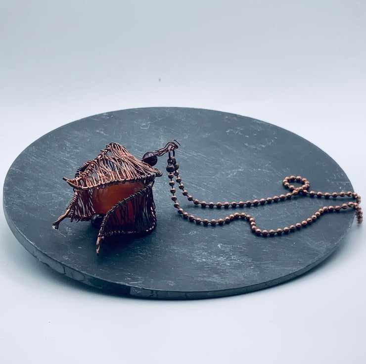 This stunning summer, outdoor themed, fruit1 is 25 mm in diameter and is delightfully presented on a long 700 mm copper bobble chain. To buy it for yourself or for another will give you the joy of something so unusual to adorn an autumnal shaded garment. A one off piece, buy it now before someone else snaps it up. The chain length may be altered to whatever length you wish, just ask!