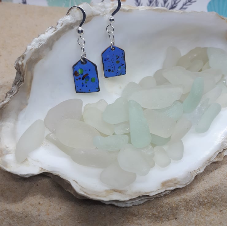 Each measures approximately 1.4cm x 0.9cm, and are hung via a sterling silver jump rings on to sterling silver hook earrings.