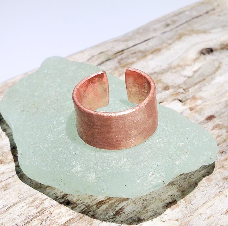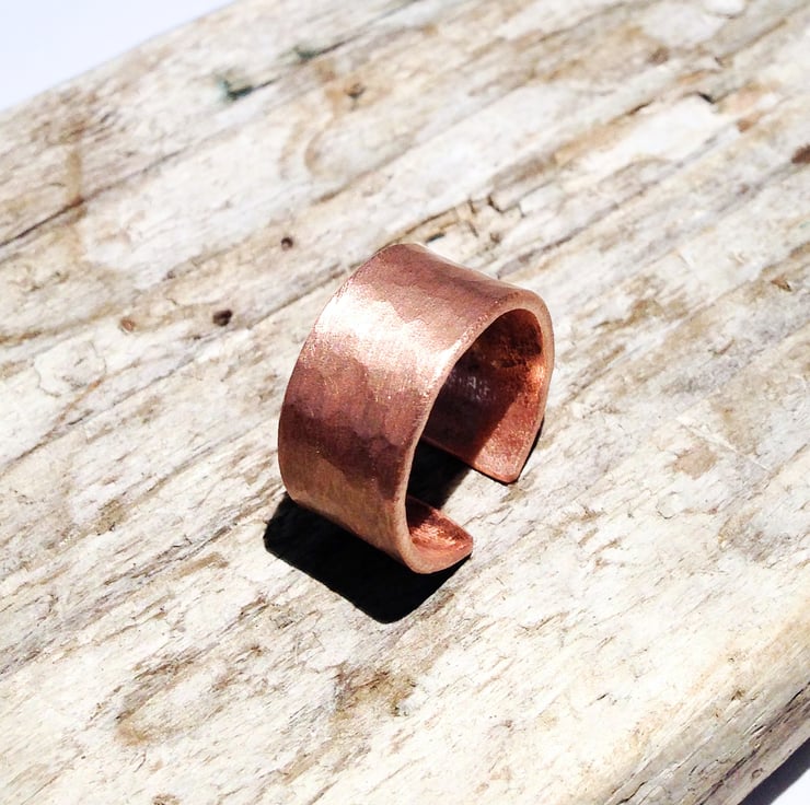 This beautiful rustic style ring has been hand forged from copper. I have given it an attractive ball hammered and brushed finish.