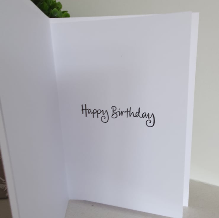 Inside you will find an insert on quality, smooth paper with the sentiment 'happy birthday '.