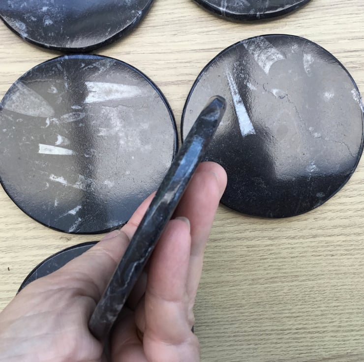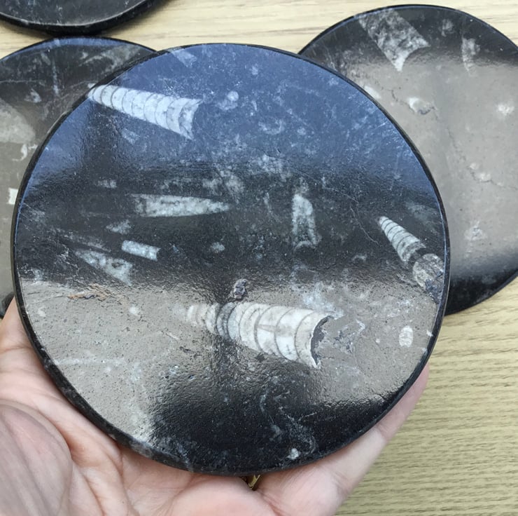 Each orthoceras coaster measures approx 10cms in diameter and approx 6mms in depth.