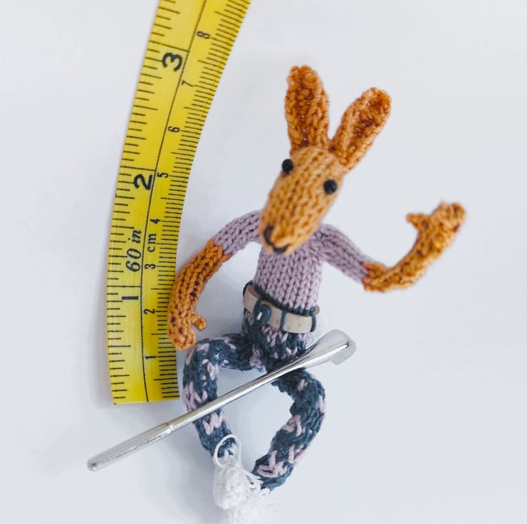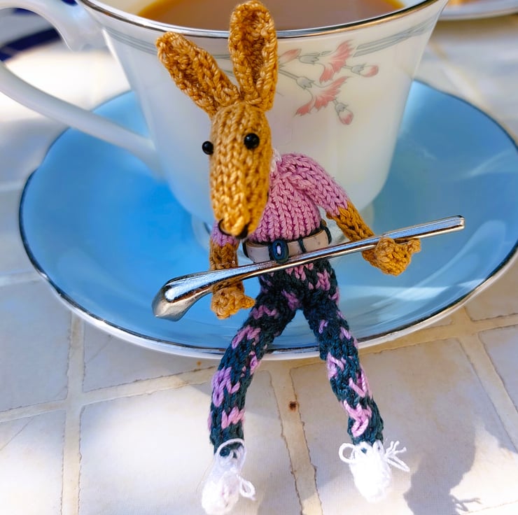 I have been designing & making tiny knitted characters for a few years to populate a little imaginary seaside town - 'Little Yarnings'. I have been working on adding armature to the tiny characters but this, scaled up version of one of the characters, is more 'user-friendly' as, being larger, I could more easily add a pipe cleaner armature to make him positionable. Every character is made from scratch - I don't bulk make 20 identical rabbits to sell; this means that even if I make another golfing rabbit, they will have different features, different shaped ears, tail etc. giving you a totally unique companion.