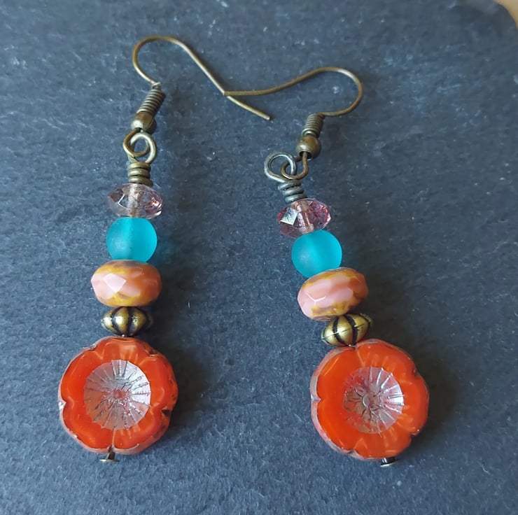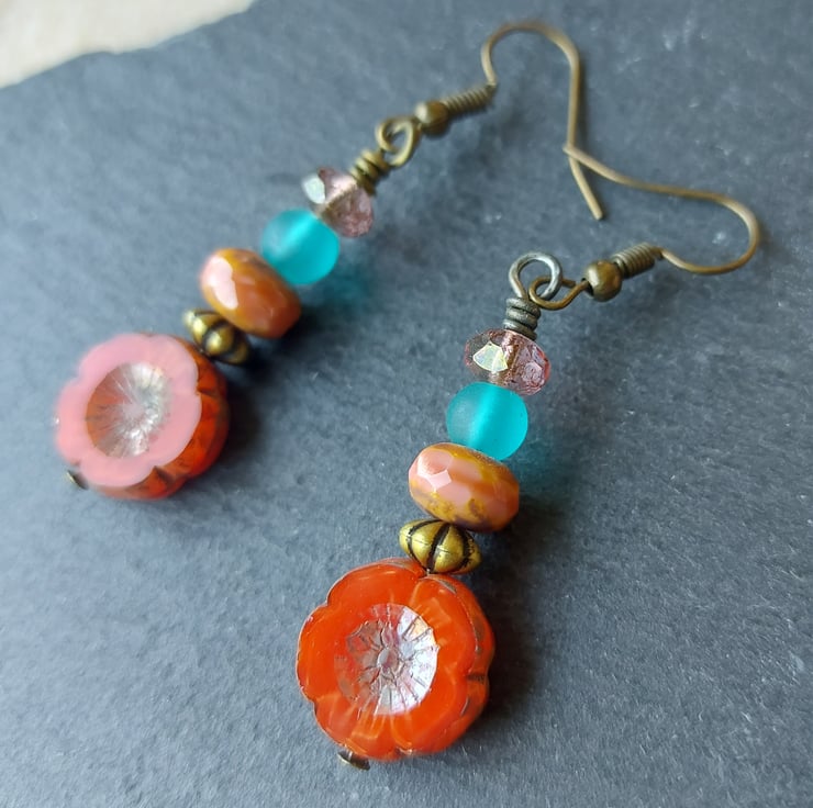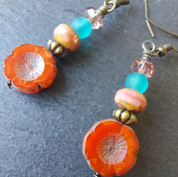 Czech flower and best quality glass beads make for a stunning pair of earrings