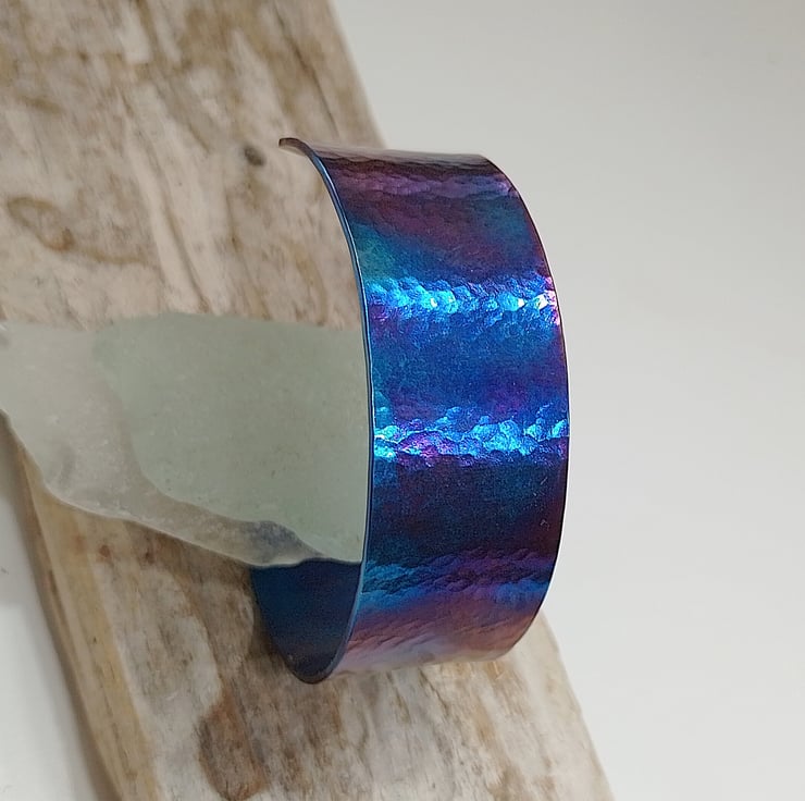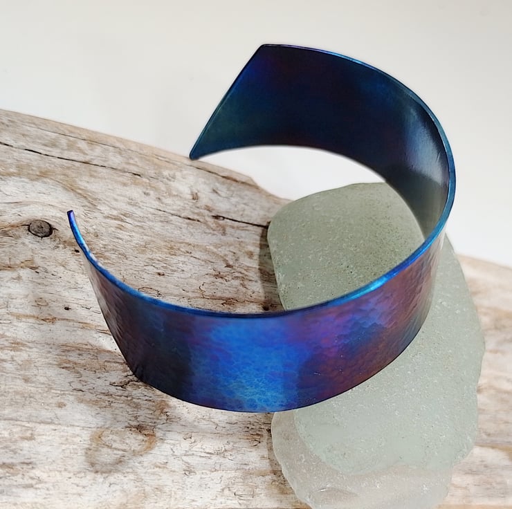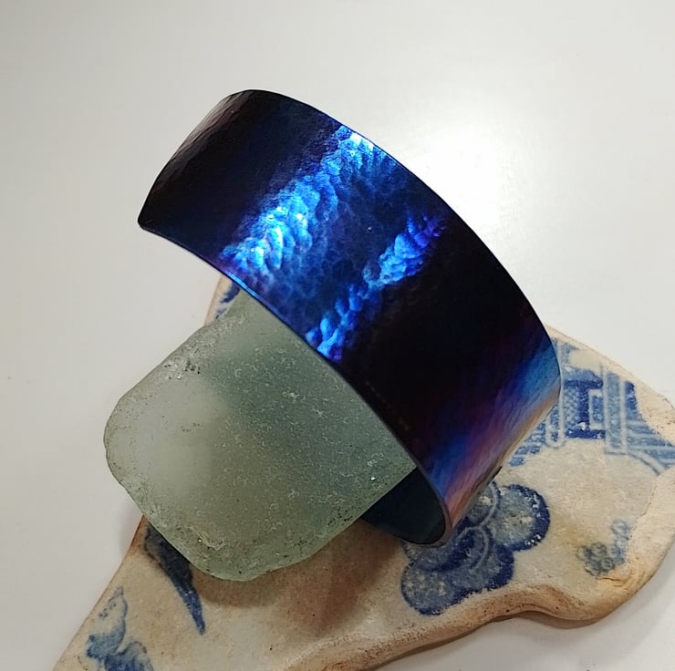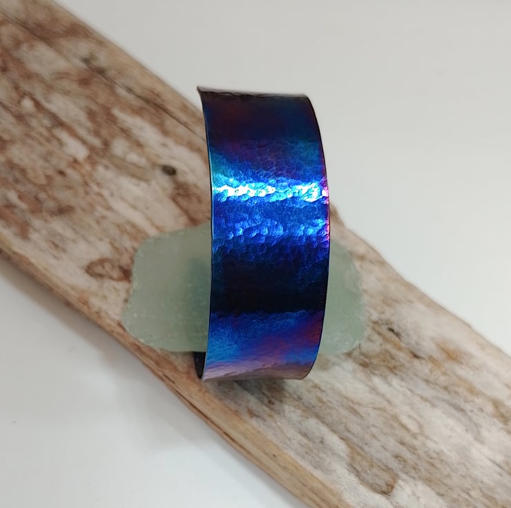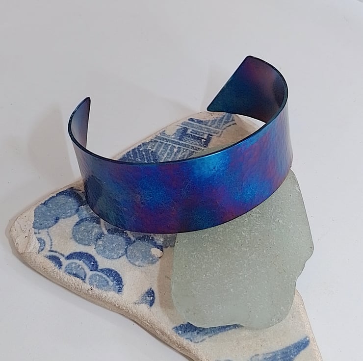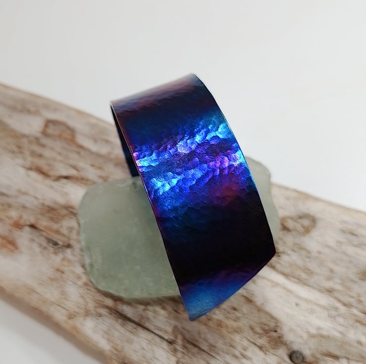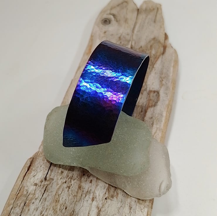 This beautiful titanium bangle displays an attractive range of shades which really come to life when the light hits them.
